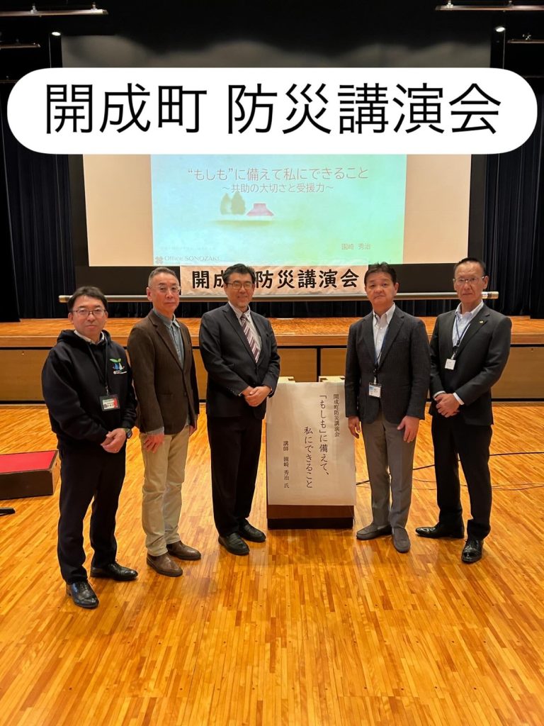 最新ニュース 開成町 防災講演会 報告 admin 2026年1月6日 <開成町 防災講演会>を開催しました。 100名を越える方にご応募いただき、大変盛況に開催することができました。講師の園崎さんは、前日は岡山県、講演終了後には大阪府へと、全国的にご活躍されており、講演の中でも全国のリアルな現状をお聞きすることができました。今回の講演会をきっかけに町と社協の連携の重要性も改めて感じることができました。いつかくる災害に備えてオール開成で取り組めるよう頑張ります! アンケートの結果 防災講演会 R7 アンケート結果 check✅して下さい